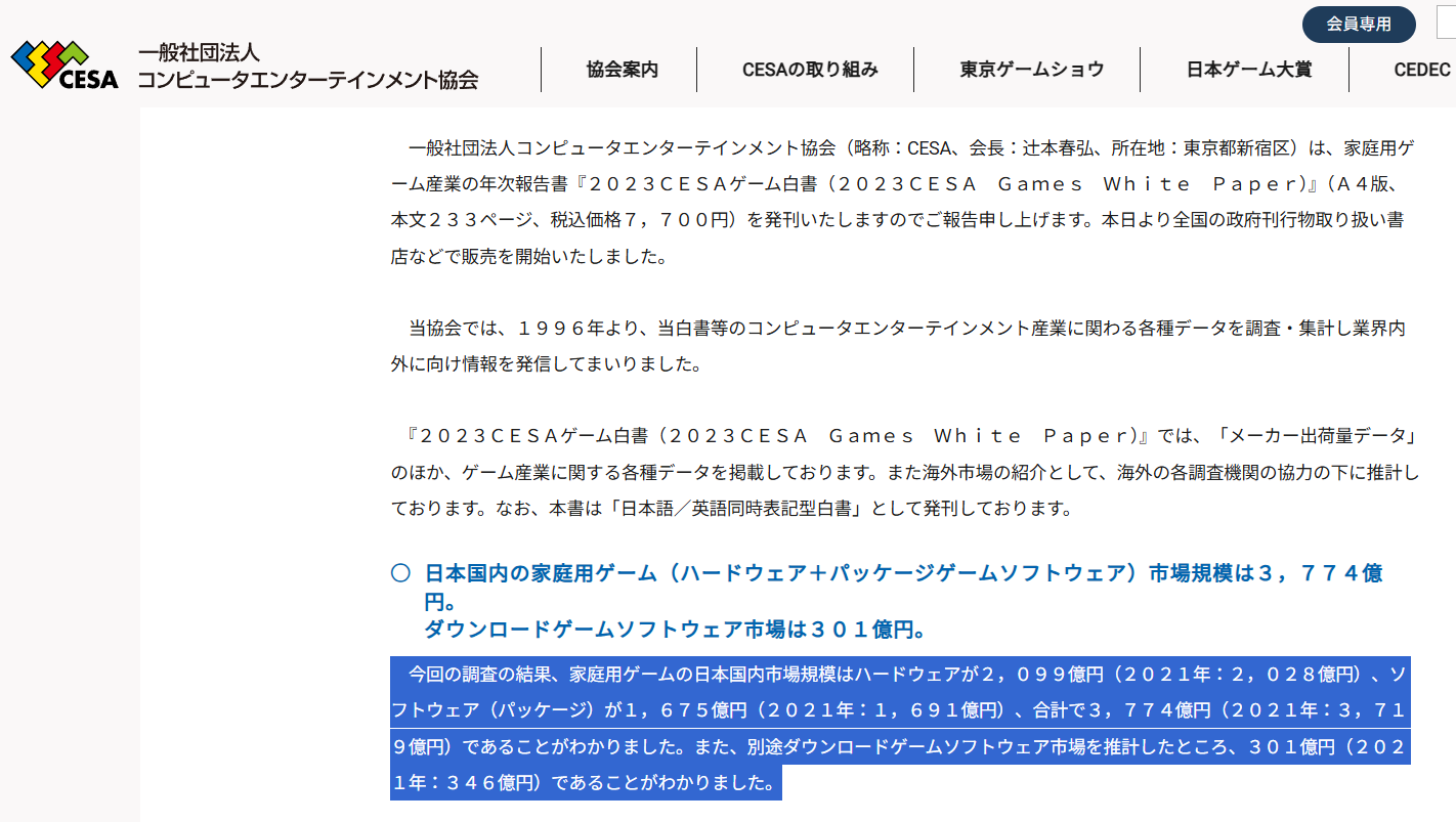 国内最大のゲーム業界団体CESAのデータによると