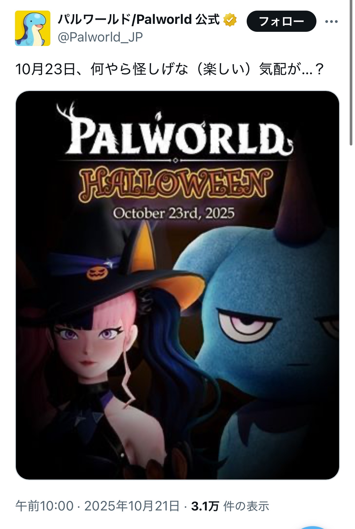 https://x.com/Palworld_JP/status/1980439050516312104